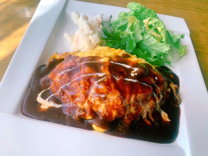 私はオムライスセット、ハーブチキンのホットサンドを注文。