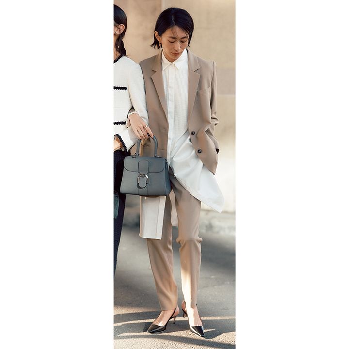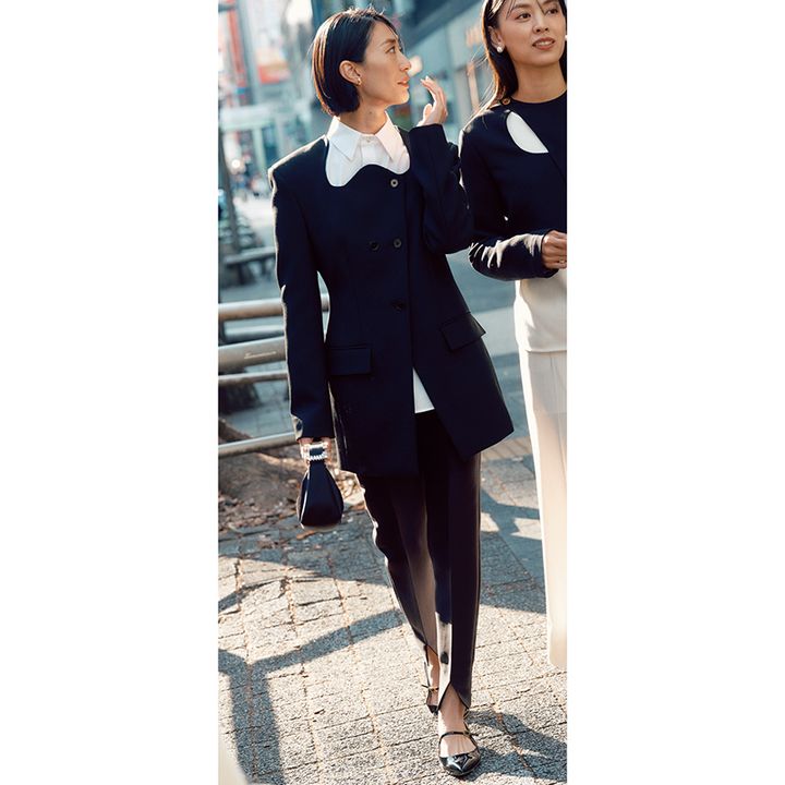 ブラウスよりもハンサムなジャケットで節目のきちんと感を出したいモード派。王道だからこそ威信をかけて無難に見えないデザインや着こなしを選び抜きつつ、尖りすぎない〝可愛げ〟を小物で残して。