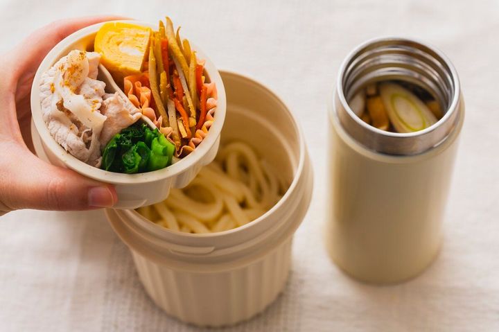 「わが家の子どもも愛用しています!」と野上さんが挙げてくれたのは、「そと麺」を気軽に楽しめるヌードルコンテナー。麺とつゆを別々に持ち運べ、食べる直前に温かいつゆをかけられます。保冷にも保温にも対応しているので夏は冷たい麺も楽しめます。断熱構造の専用ポーチつき。
