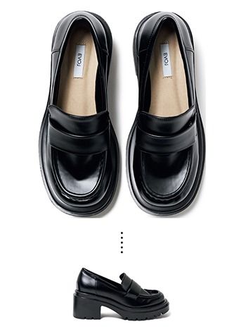 黒ヒールローファー(7) 7,920円/EVOL 丸みを帯びたフォルムで、かっちりとした黒もどこかやさしげ。高めのヒールは厚底ゆえにはきやすい。
