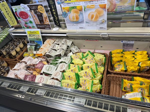 まずは2020年10月にオープンした「空の駅オーチャード」 フルーツをテーマに地元三原・世羅エリアの特産品やスイーツを販売しています。地元産の旬のフルーツを存分に楽しむことができます。