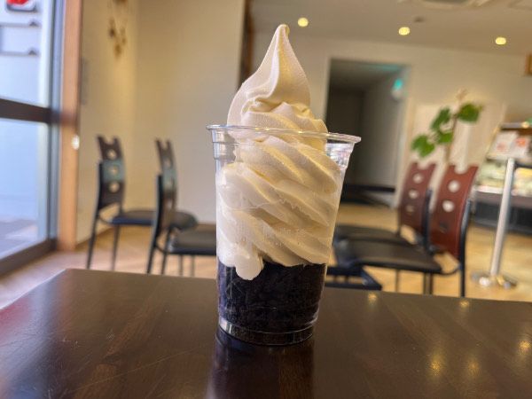子どもは「バニラソフトソフトクリーム」を注文しました。下にはクッキーが入っていて、最後まで美味しい!と言いながら食べていました。