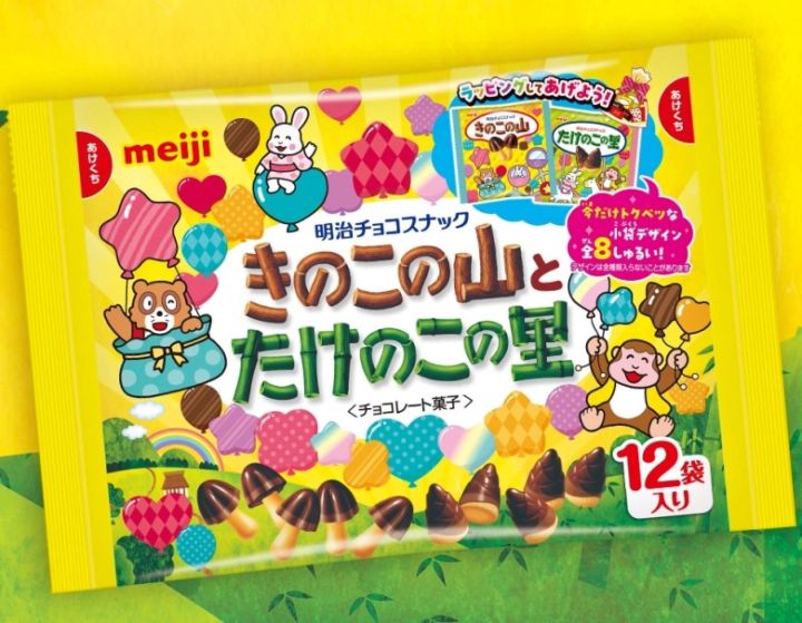 チョコレートとクラッカーのバランスが良い「きのこの山」と、チョコレートとサクサクのクッキーがマッチした「たけのこの里」。同じ『meiji(明治)』の商品ですが、国民大調査と称して人気投票が行われ、どちらが好きかで論争になるほどの人気商品です。