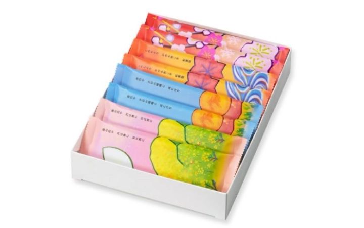 キャラメル、テ ヴェール風味、ヴァニーユ、フレーズ風味、シトロン風味、ショコラの6種類があります。