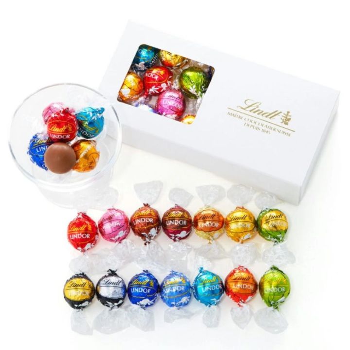リンドールはさまざまな詰め合わせが販売されており、こちらは15種類のフレーバーを試せるテイスティングセットです。チョコレート好きな方には特によろこばれること間違いありません!