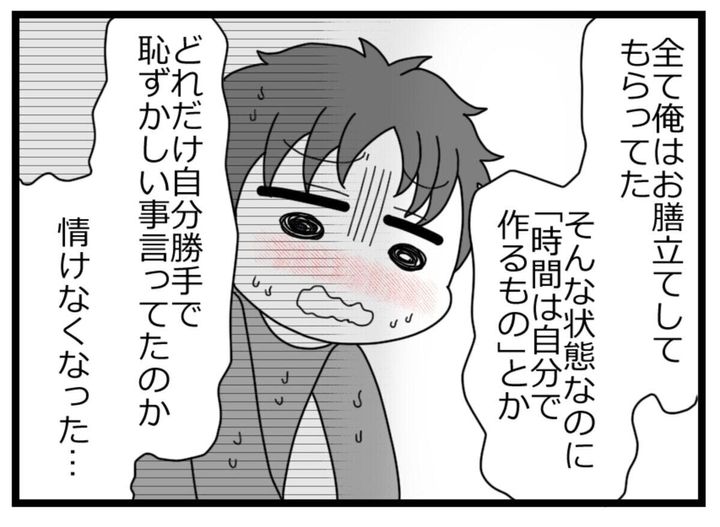 エェコさんは、夫に子どもを預けて「ワンオペ」を経験させます。その結果、時間を作れていたのは、エェコさんがいたからだと気が付きます。さらに自分が家事をまったく把握しておらず、どれだけ任せきりだったか身に染み見てわかったようです。
