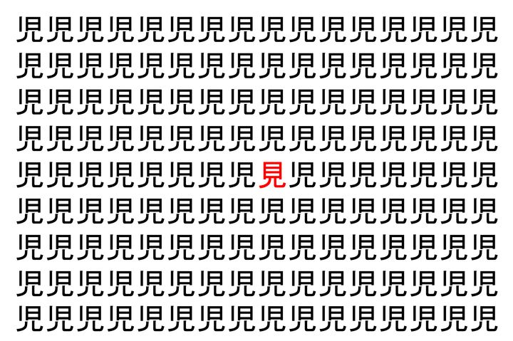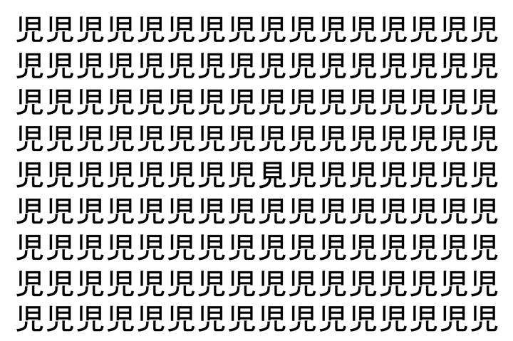 【脳トレ】「児」の中に紛れて1つ違う文字がある!?あなたは何秒で探し出せるかな??【違う文字を探せ!】
