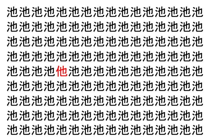 画像の中には、「池」という漢字が縦に9行、横に16個並んでいます。 全部で144個となりますが・・・、そのうち1つは「異なる漢字」となってますよ!!