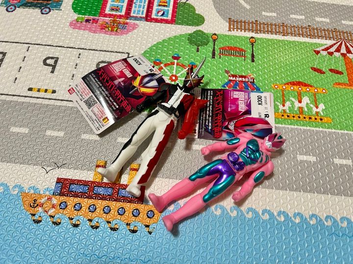 仮面ライダーソフビ2体、ヘビのソフビ(約180cm)