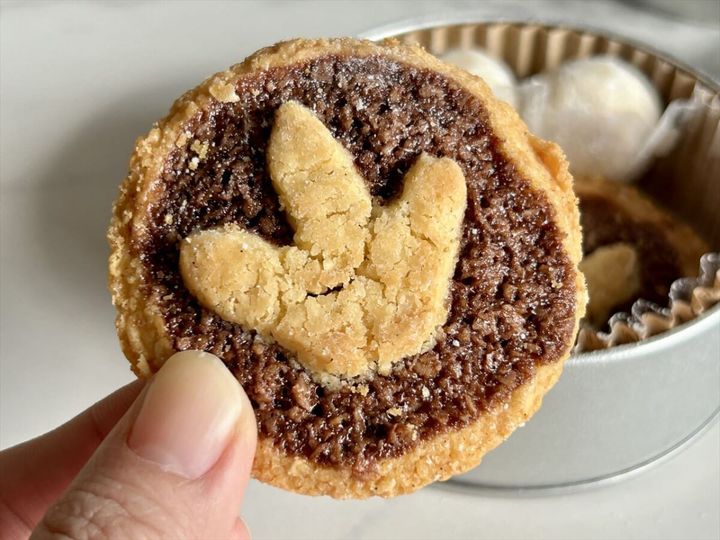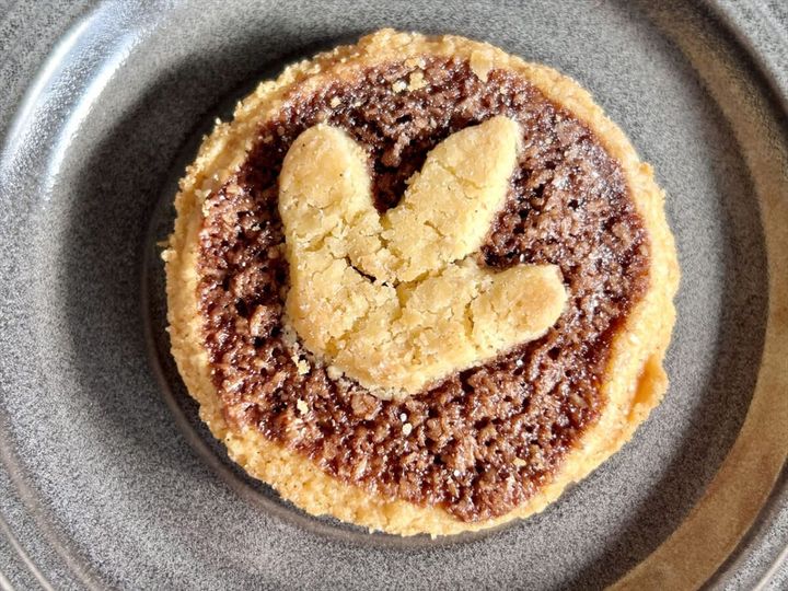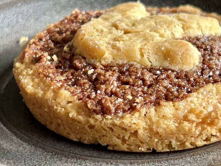 恐竜が発掘される様子をイメージしたサブレを作りたいという思いと、今までにないサブレを作りたいという思いから開発された、日本初となる三層のサブレ「トロワ・サブレ」。2枚重ねて入っていました。