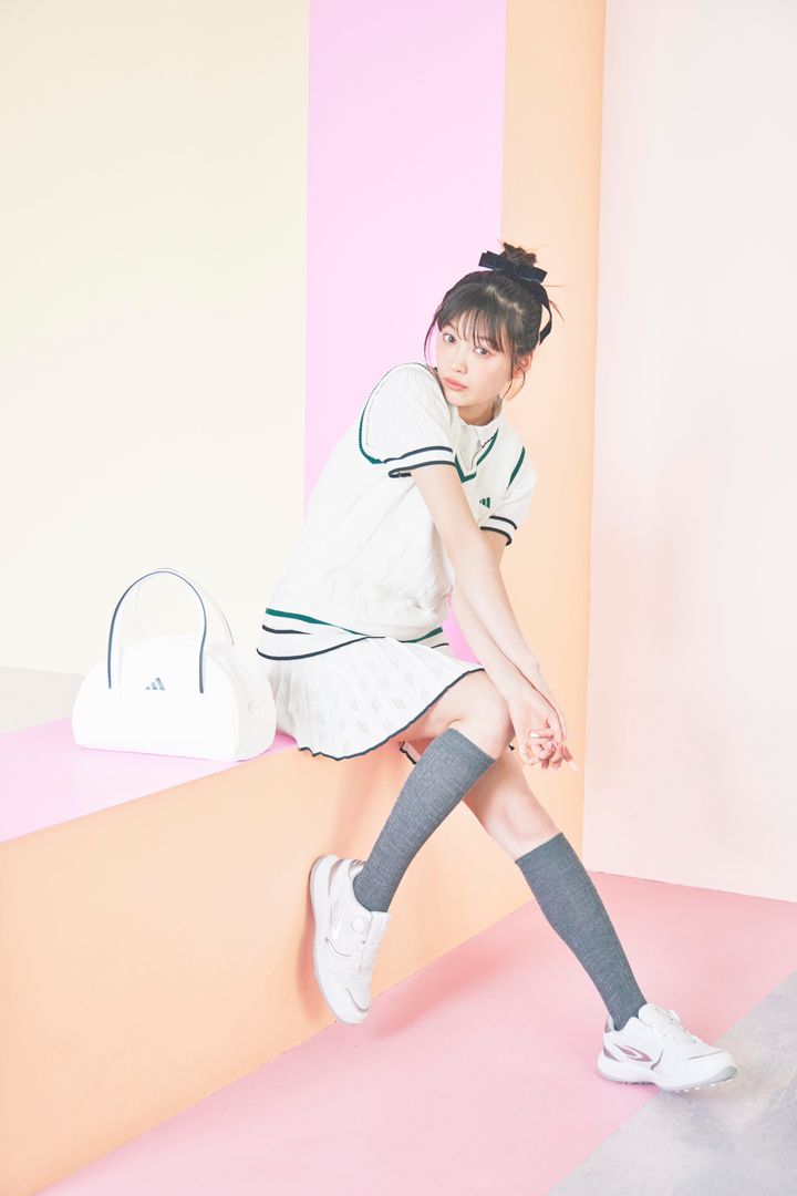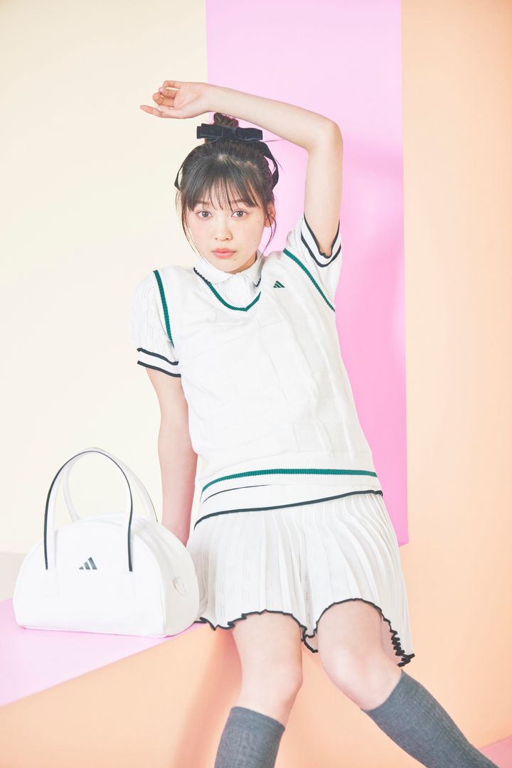 シャツ¥17,930、ベスト¥12,980、スカート¥19,800、ポーチ¥6,380/アディダス シューズ¥11,990 /ティゴラ