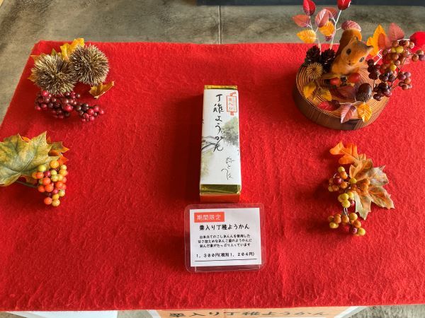 ちょうど取材時に最後の1本だったので購入しました! 刻んだ栗がたっぷり入っていて食べやすく、栗の甘さとようかんのなめらかさが絶妙に調和した上品な和菓子です。 お茶請けはもちろんちょっとした手土産にも最適です。