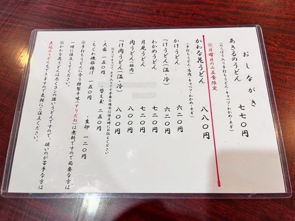 そのようなわけで、今回は赤線のひかれている『かわな花うどん』を注文してみました☆