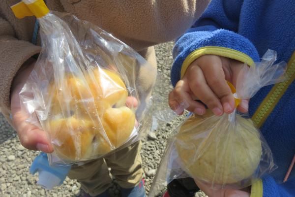 袋から出して、パンのふかふかとした柔らかさに驚きました。朝焼いたからこその柔らかさでしょうか。子供達は嬉しそうに、「美味しい」と言って、あっという間に食べ切りました。 もう少しゆっくりする予定だったのですが、あまりの強風に、滞在1時間程度で帰りの送迎バスに乗りました。