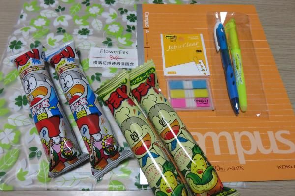 いくつかお土産を頂きましたので、紹介させて頂きます。 瀬谷駅から会場までの道のりで実施されているスタンプラリーに参加すると、手持花火を頂けました。