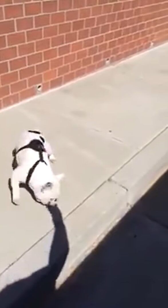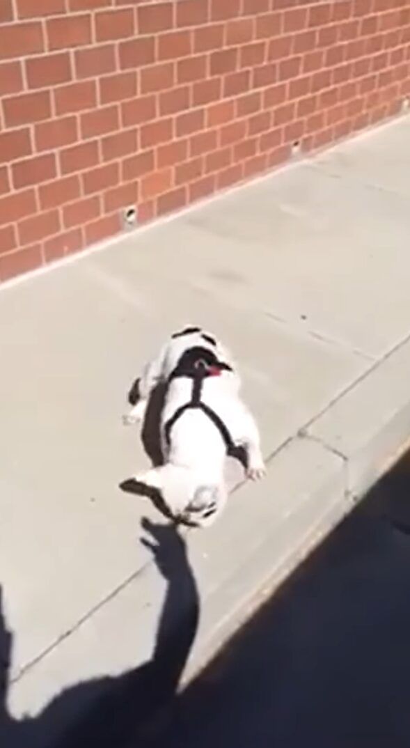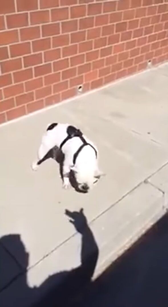 動画では、飼い主さんと遊ぶブルドッグのある日の様子が捉えられています。