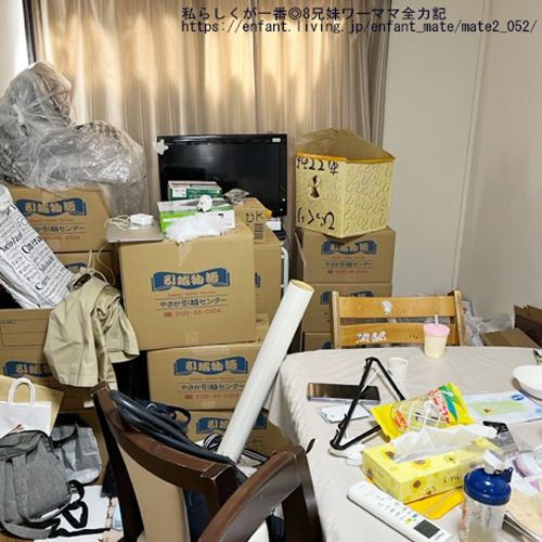 荷造りは、平日の夜、子ども達が寝た後に進めていましたが、なかなか捗らず引越し当日も荷造りが終わらず朝から作業をしていました。