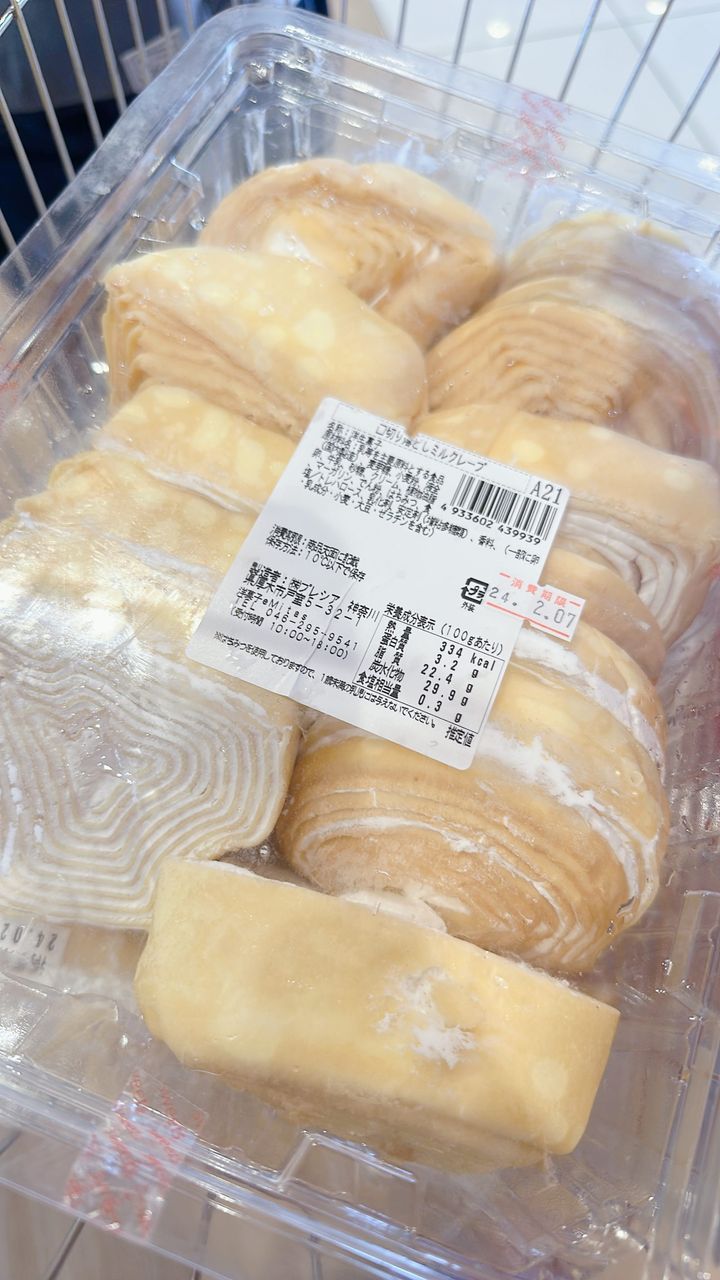 ミルクレープの切れ端!こんなに入っているのに440円。これを4個近く買う人もいました。大人気商品で店頭にある時とない時があります。