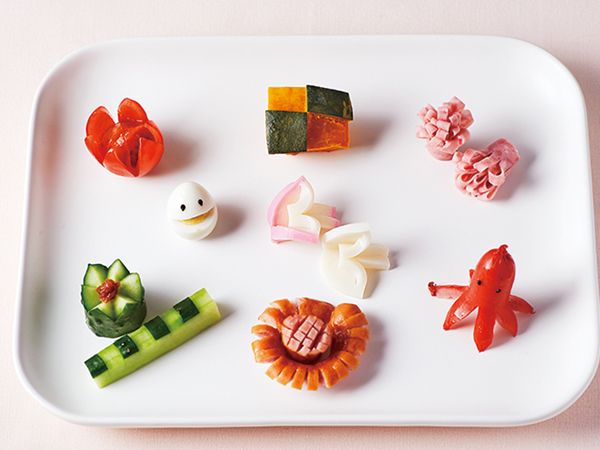 また、著者のほりえさちこさんが得意な飾り切りやピック使いなども紹介されています。