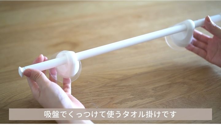 ダイソーに売っている「吸盤タオル掛け」。吸盤でバーを固定することで、タオル掛けを増やすことができるアイテムです。