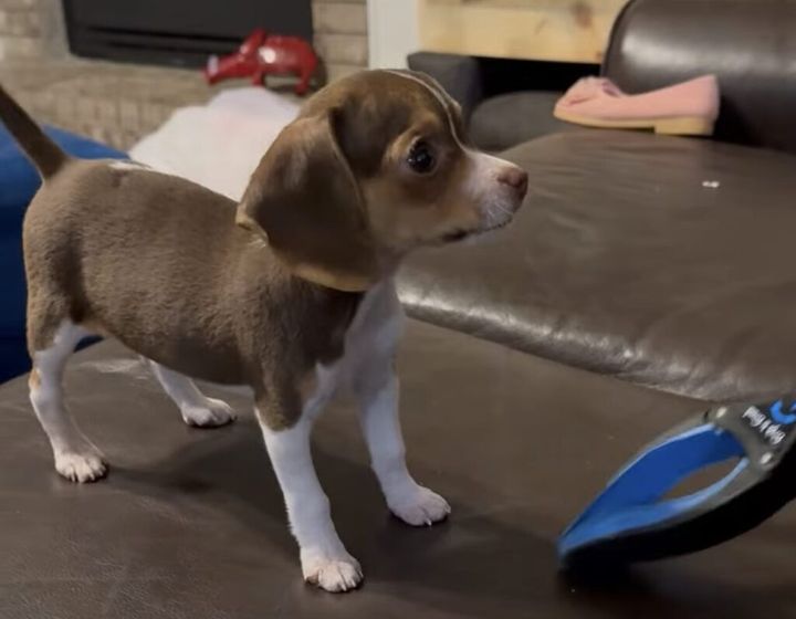 遊び相手(?)を見つけたビーグルの子犬さん。
