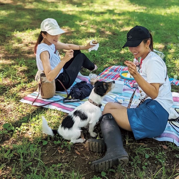 海外で飼い始めたこともありお互いに苦労した時期もあったけれど、今では立派な家族の一員!運動量が多い犬種なので、毎日朝晩たっぷりお散歩に行けるのも楽しいんです。公園に行くといろんなワンちゃんがいて、おはぎを通してたくさんのお友達ができたし、何より自然と戯れるおはぎを見ているのが幸せ。先日はリーダーズの中村美貴ちゃんと一緒にピクニックをしました。