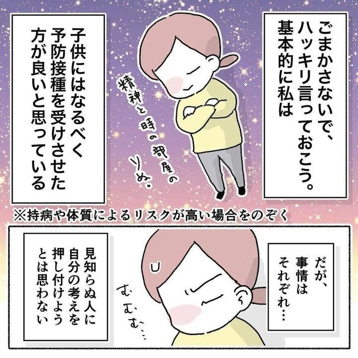どんな考えを持っていてもそれを認め、尊重し合うことが大切ですね。タカヨのように、自然派の価値観を河野りぬさんに押し付けることはよくありません。そして、どうしても合わないと感じたり交流を続けることがストレスに感じるときは、そっと距離をとることも大事な方法です。