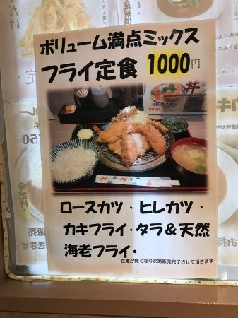 店長さんに店内での人気メニューをお聞きしたところボリューム満点の【フライ定食】だそうです!!ロースカツ・ヒレカツ・カキフライ・タラ&天然・海老フライが入った定食です。学生さんや男性のお客様がよく注文するそうです。何を注文しようか迷ったら、ぜひフライ定食注文してみてはいかがでしょうか??