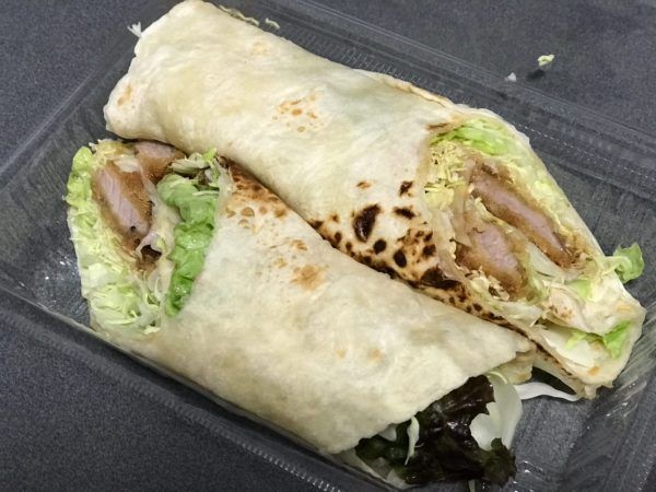 ヒレかつの入ったトルティーヤ気になったので、お持ち帰りで注文してみました!!ヒレかつは注文してから揚げてくれます。熱々のヒレかつが入ったトルティーヤを召し上がることができます。