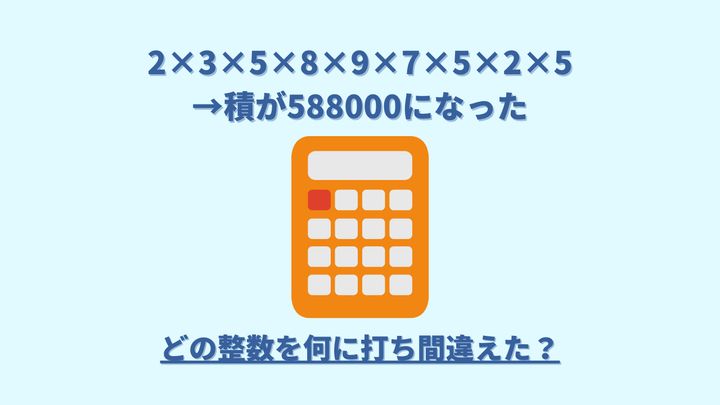大人が意外と解けない「積が588000になった」→どの整数を何に打ち間違えた?