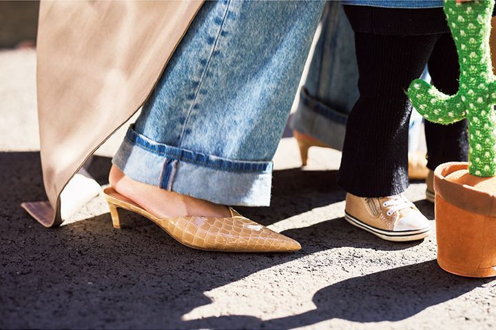 もちろんスニーカーを履く日もあるけれど、毎日同じじゃつまらない。足元起点でコーデを考え、シーンに応じてヒールもブーツも履いちゃうのが、感度の高い新米ママたちの共通認識でした。