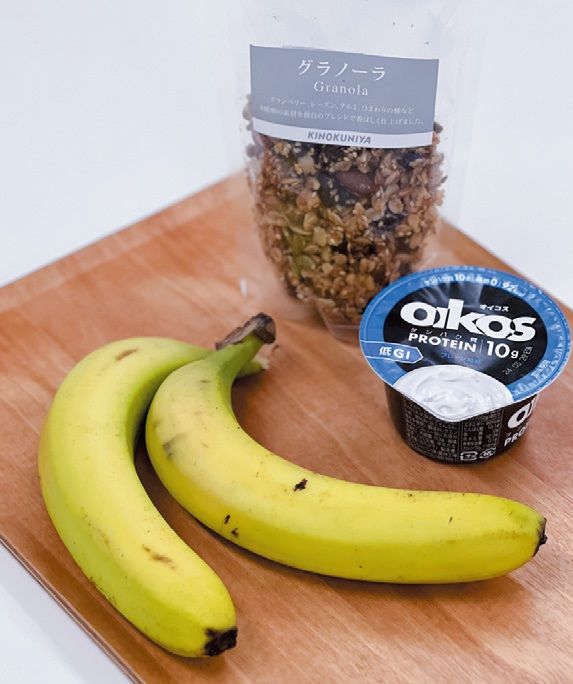 高タンパクのヨーグルトと、炭水化物と食物繊維が摂れるグラノーラと、トリプトファンが摂れ、糖質が高くないバナナ。朝メニューの中ではパワーアップ系。イベントや撮影など緊張感とパワーが必要な時に。腸を落ち着かせ、幸せホルモンを作ってくれます。
