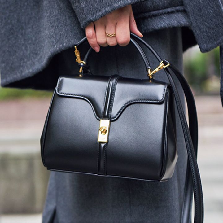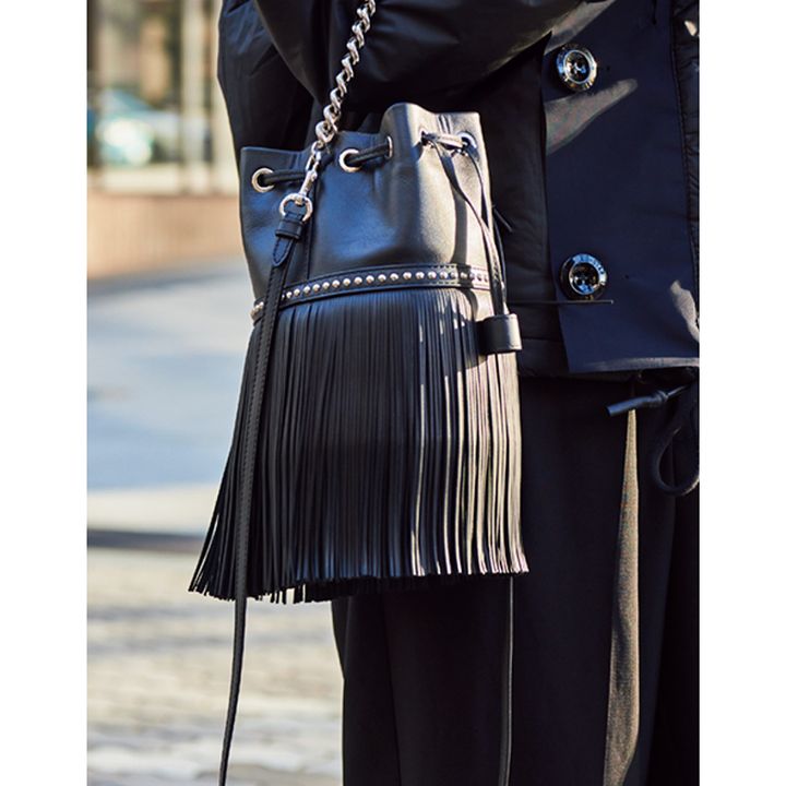 THE ROWのバッグは持つと一気にモード顔。色っぽさのあるスカートを着るからSeaJapanの黒キャップで引き算を加えたい(保木さん)。スパイスになるJW Andersonのバッグで黒コーデを単調に見せません(住友さん)。CartierのタンクとBottega Venetaのバッグをクラッチ持ちしてリッチ感を出して(坂元さん)。