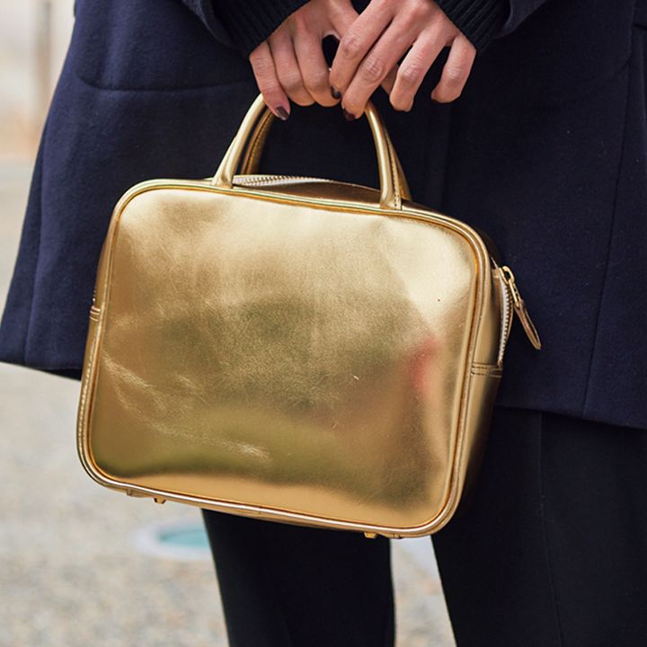 かっちりした印象のPierre Hardyのバッグは薄型でシンプルなサンバと相性良し(小西さん)。全体がボヤけないようCELINE16のブラックを締め色に(光山さん)。一見派手なCOMME des GARÇONSのバッグはベージュのサンバと馴染みます(井川さん)。