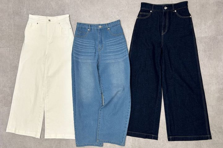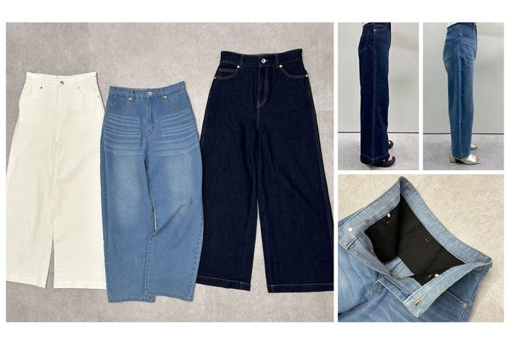 左・右【革命デニム】ウエストシェイプデニムワイドパンツ各¥6,589、中央・【革命デニム】ウエストシェイプカービーデニム¥6,039/すべてロペピクニック