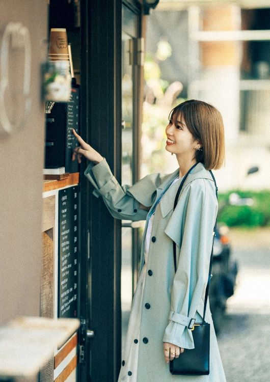 トレンチコート¥46,200/ジル スチュアート Tシャツ¥9,900/マイカ アンド ディール(マイカ アンド ディール 恵比寿店) スカート¥23,100/アルページュストーリー イヤリング¥3,080/アネモネ(サンポークリエイト) ネックレス¥14,300/ココシュニック オンキッチュ(ココシュニック) リング(左手中指)¥16,500/masae、リング(左手人さし指)¥2,400/ヘンカ(ともにロードス) バッグ¥91,300/ザンケッティ(八木通商)