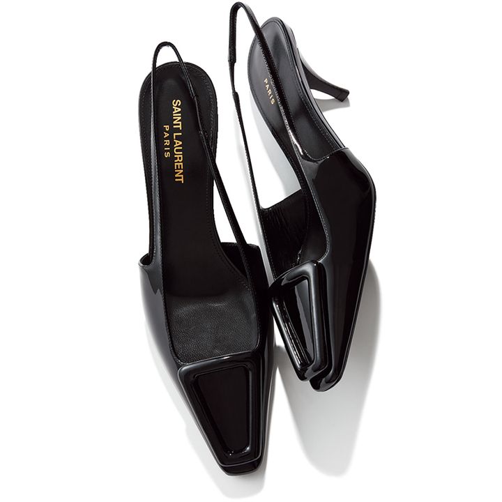 ベーシックなテーラードこそポリッシュなパテントを効かせて非日常な特別感を。無駄なく端正なバックルや華奢なスリングバックが凛とした気持ちに整えて。