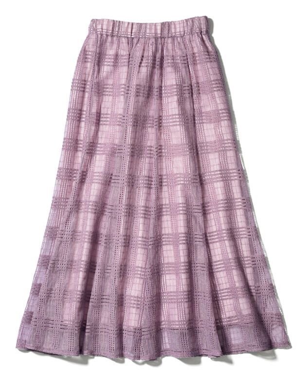 軽やかに広がるロング丈のチェック柄スカートは、無地トップス合わせるのがGOODバランス。