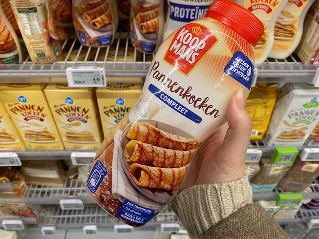 続いておすすめするお土産は、「パンケーキの素」です。オランダではパンケーキを焼く習慣があるため、ホットケーキミックスのような手軽にパンケーキが焼ける商品をよく見かけます。