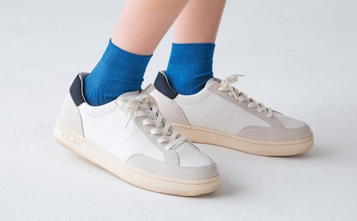 レザーのマテリアルがシックなスニーカー。スポーティすぎないクリーンな配色も魅力。¥26,400(クレイ/リーガルコーポレーション TEL:047・304・7261) 靴下¥3,960(マルコモンド/エストネーショングランフロント大阪店 TEL:0120・503・971)