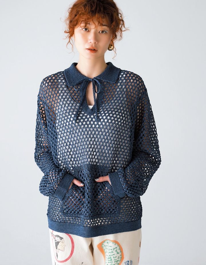 涼しげなメッシュニットはインナー次第で表情が変化。