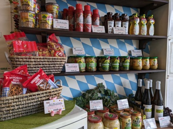 瓶詰のザワークラウトやソーセージに合う調味料なども販売しています。