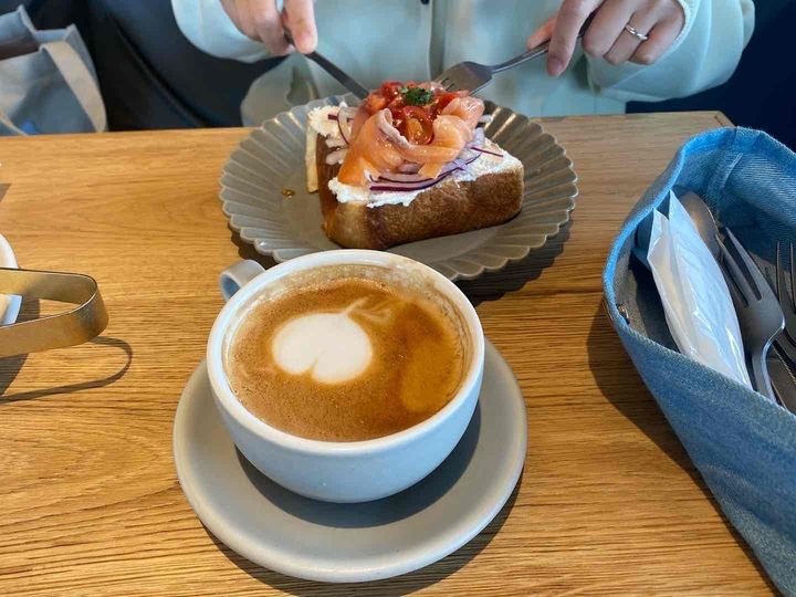 ベーカリーのイートインスペースは、シンプルでモダンな空間。10:00〜17:00の時間帯で開放されていいて、ブレッドと合わせるドリンクメニューもあるので、購入したものをその場で気軽に楽しめます。