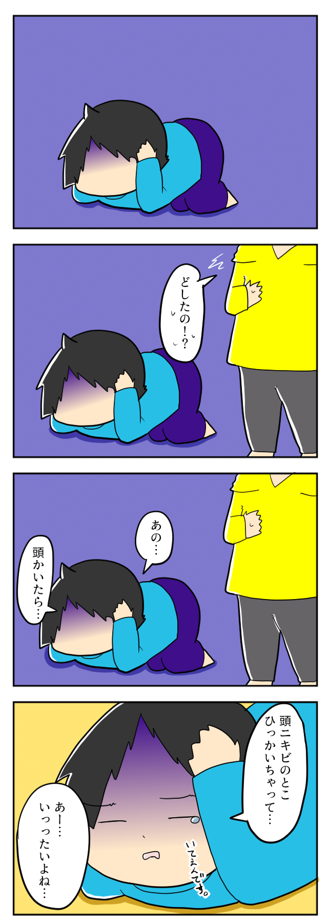 3. わかる!痛いよねー!(汗)頭を抱えて悶絶する息子・・その理由に母も納得|mochikoの育児マンガ