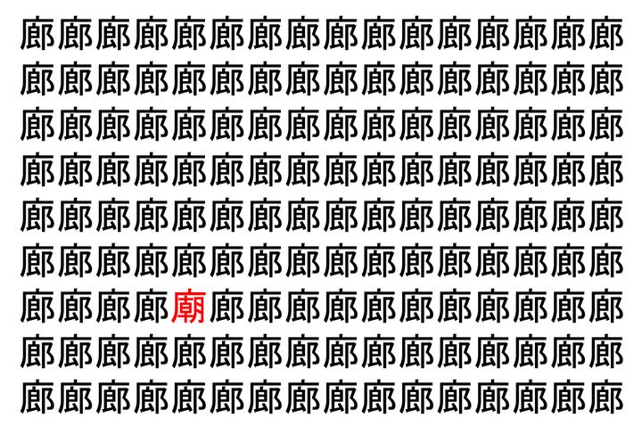 【脳トレ】「廊」の中に紛れて1つ違う文字がある!?あなたは何秒で探し出せるかな??【違う文字を探せ!】