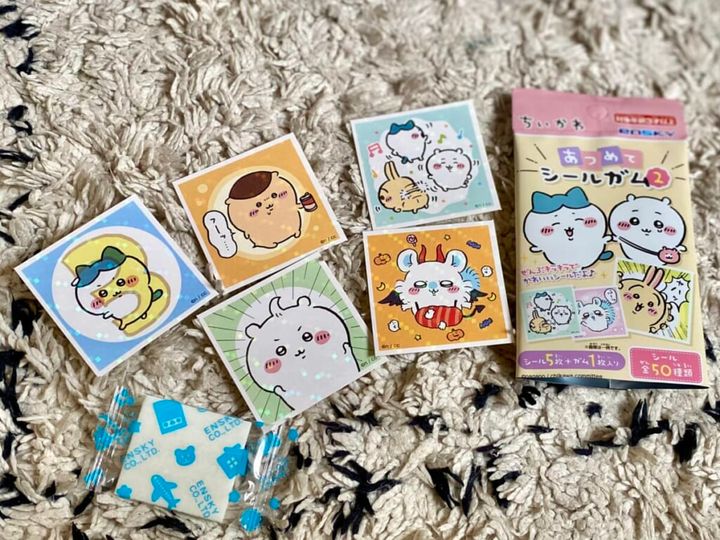 大人気のシールシリーズ。100均では出合いませんでしたが、ちいかわらんどやスーパーなどでは第三弾も登場しています。1袋に5枚、ランダムでシールが入っています。