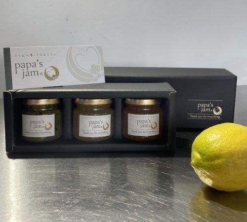藤堂さんの作る旬の果物を使ったジャムですが、実は、ご実家が果樹園をされていたことから始まり…今は、ご自分で大三島に果樹園を持ち、レモンは自家製。その他は20社以上の契約農家さんと取引きをされ新鮮な材料を選び抜き、最後は藤堂さん=パパの魔法で美味しいジャムとなり、沢山の方を笑顔にしています! そんなジャム一筋で挑戦されているからこその、パパズジャムさんの素材や味に拘った、とっておきのジャムたち。予約、お取り置きされているファンのお客さまが沢山いらっしゃいます!!
