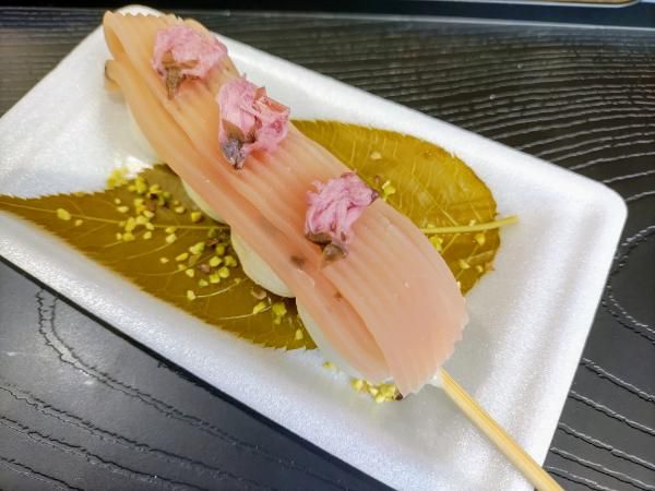 桜の葉の優しい香りと、ほんのり甘いピンクの桜あんが美しい「桜だんご」。色鮮やかなピスタチオが散りばめられ、食感と風味のアクセントになっています。今の時期にしか食べられない、おすすめの「桜の季節限定の焼きだんご」。春の季節を満喫したい方におすすめ!