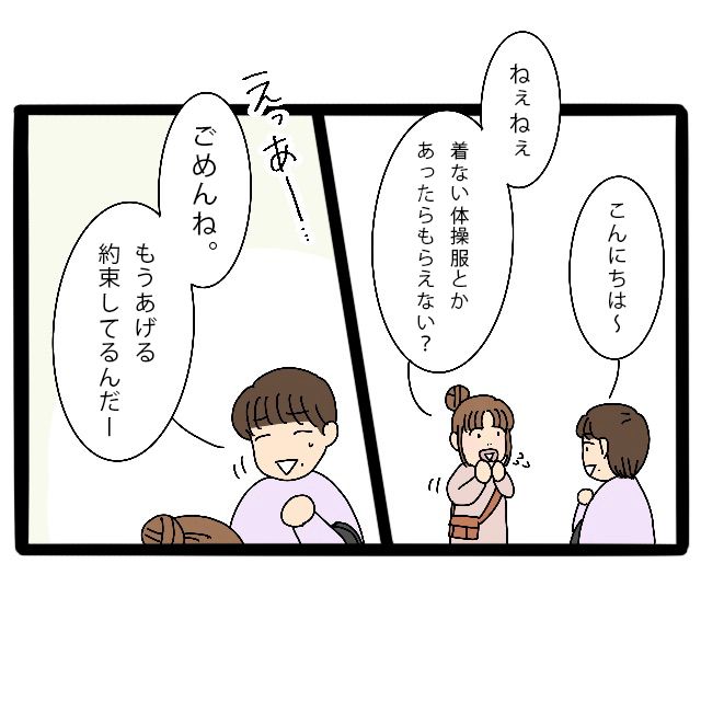 子どもが使ったり売ったりしていたから、お下がりの体操服が少なくなってきました。また違う人に声をかけてみようかな。