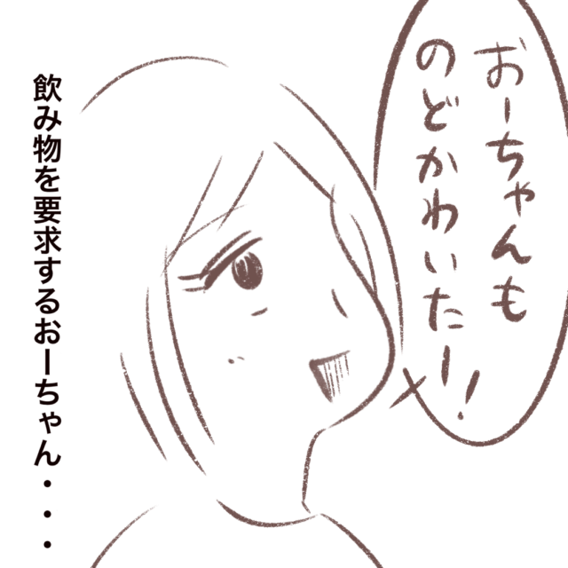 まるさんがおーちゃんのことは無視を決め込み、アキくんと遊んでいると、諦めたのかおーちゃんは別の親子のところへ行ってしまいました。そして案の定お母さんにばかり話しかけたうえに、「のどかわいたー」と言い始めました。